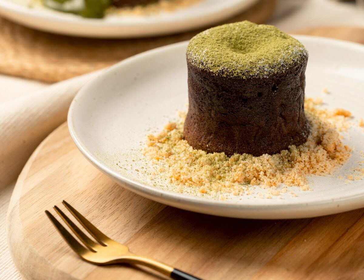 ▲餐後甜點-「黑耀熔岩蛋糕」,打造在甜潤口感 。