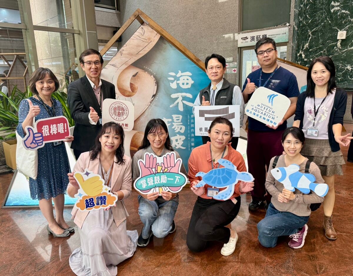 報導】國家圖書館與國立海洋生物博物館首度跨界聯手,推出「海不揚波:書頁間的海洋魅影」暨「海洋生物,藥不藥?」行動博物館巡迴展,於今日(4月8日)在桃園市立圖書館平鎮分館舉行開幕儀式。本次展覽打破學科界線,將珍貴的古籍文獻與現代海洋科學互動裝置結合,為桃園市民帶來一場視覺與知識的感官饗宴。這也是該巡迴展繼新營、雲林、屏東及臺南後的第五站,展現公共圖書館推動科普教育與文化傳承的豐沛能量。