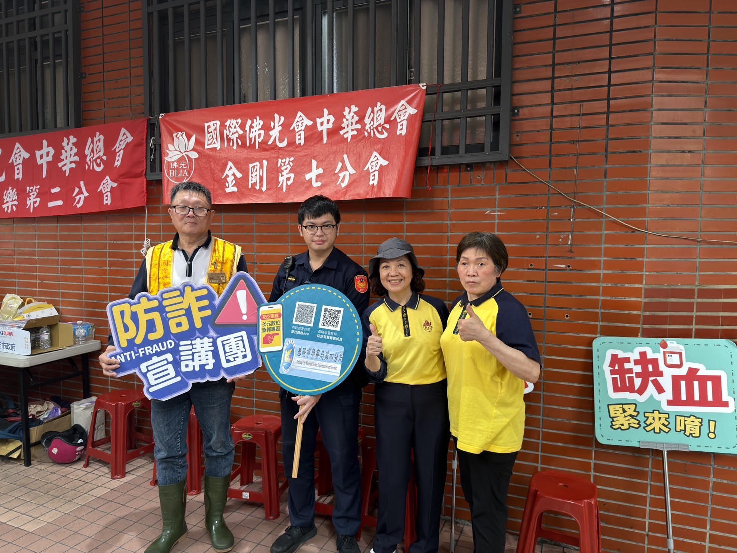 【民眾網編輯方笙楠基隆報導】基隆市警察局第四分局中山派出所於115年4月6日參與佛光山舉辦之捐血活動,員警除挽袖捐血、熱心投入公益外,亦把握現場人潮聚集時機,主動向民眾進行反詐騙宣導,展現警察關懷社會、守護民眾的積極作為。