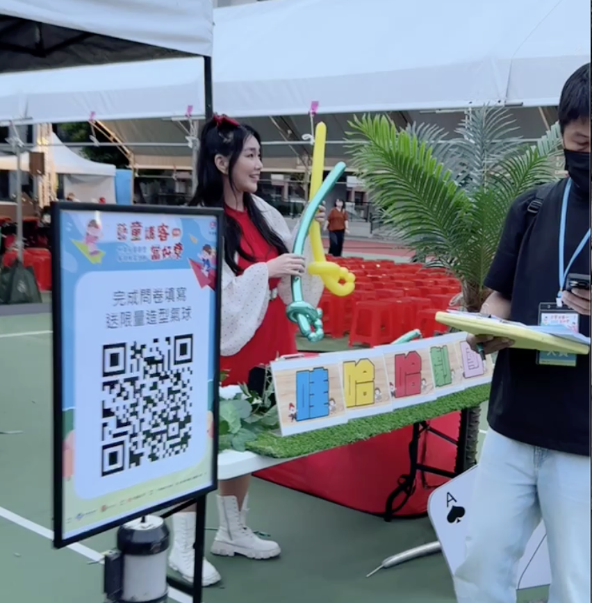 ▲新竹氣球工廠為早到孩童準備早鳥禮,贈送精緻造型氣球,現場洋溢歡樂氣氛。