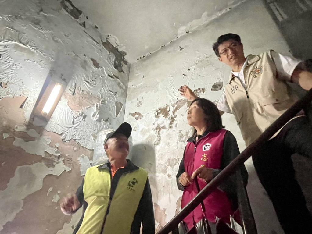 榮服處說明,此次會勘個案謝伯伯高齡90歲患有攝護腺癌,配偶罹肺腺癌、長子大腸癌末期,全家均無收入,經濟困頓;生活全仰賴就養金與老年年金維生;住宅因屋齡老舊,受豪雨與強風影響,出現屋頂滲漏、牆壁龜裂、室內多處積水等情形,居住安全令人憂心。