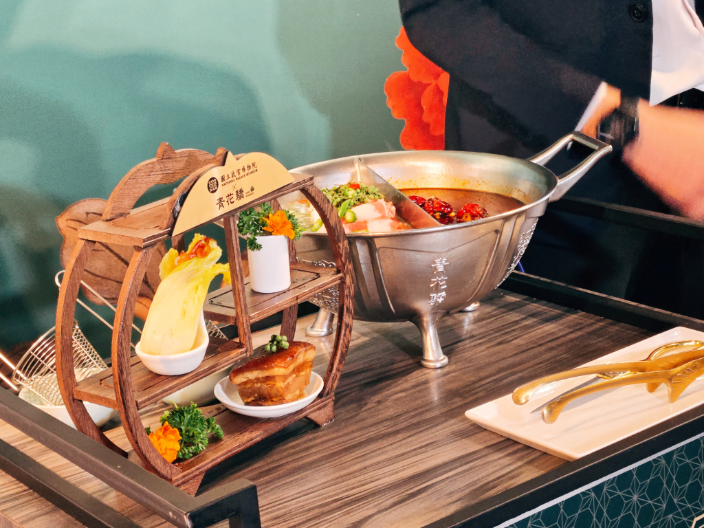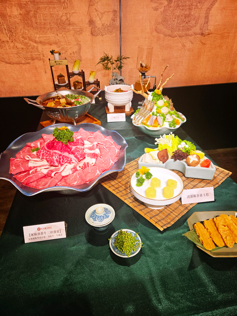 此次聯名企劃特別選在故宮特展期間推出,即日起至12月31日,青花驕推出的「國寶驕饗宴」雙人及四人套餐,售價從1,988元起。這些套餐不僅僅是美食的饗宴,更是一場視覺與文化的盛宴。餐點中融入了象徵節慶與祝福的屠蘇酒,讓「屠蘇酒香牛豚盛宴」雙人套餐與「屠蘇酒香牛三拼盛宴」四人套餐更添風雅。