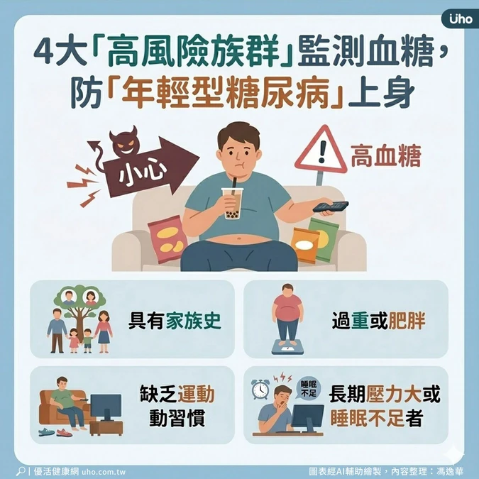 對於年輕型第2型糖尿病,應採取更積極且個別化的治療策略。黃俊淵提醒,下列族群應定期進行健康檢查,及早監測血糖: