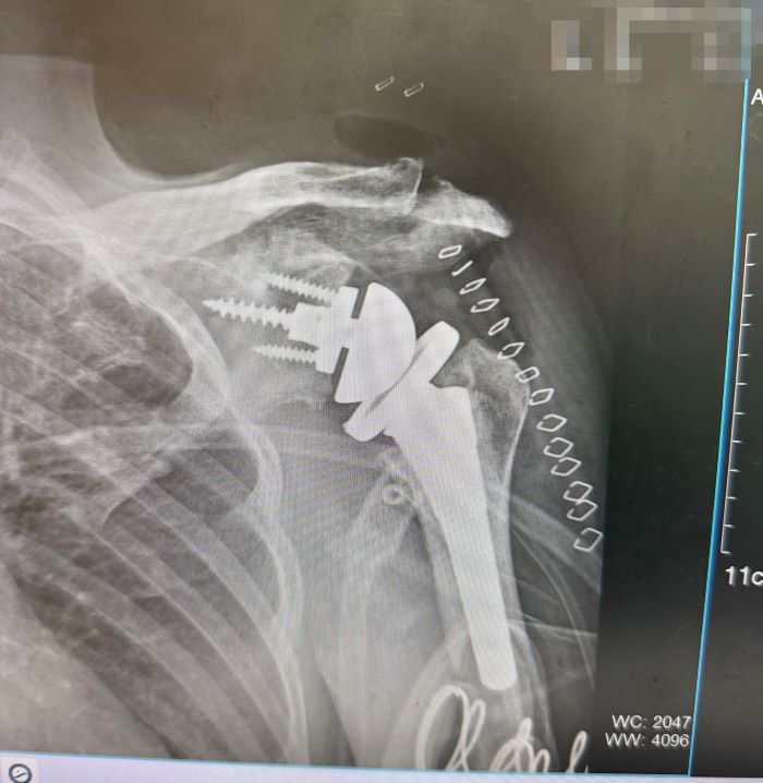 經醫療團隊評估後,接受反式人工肩關節置換手術,並透過術前3D模擬進行精準規劃。術後復健進展良好,約兩個月後已可自行完成多數日常動作,生活自理能力明顯改善,疼痛情形亦大幅減輕。