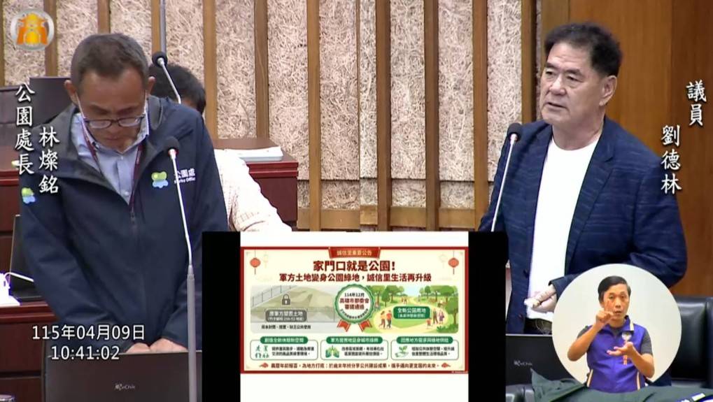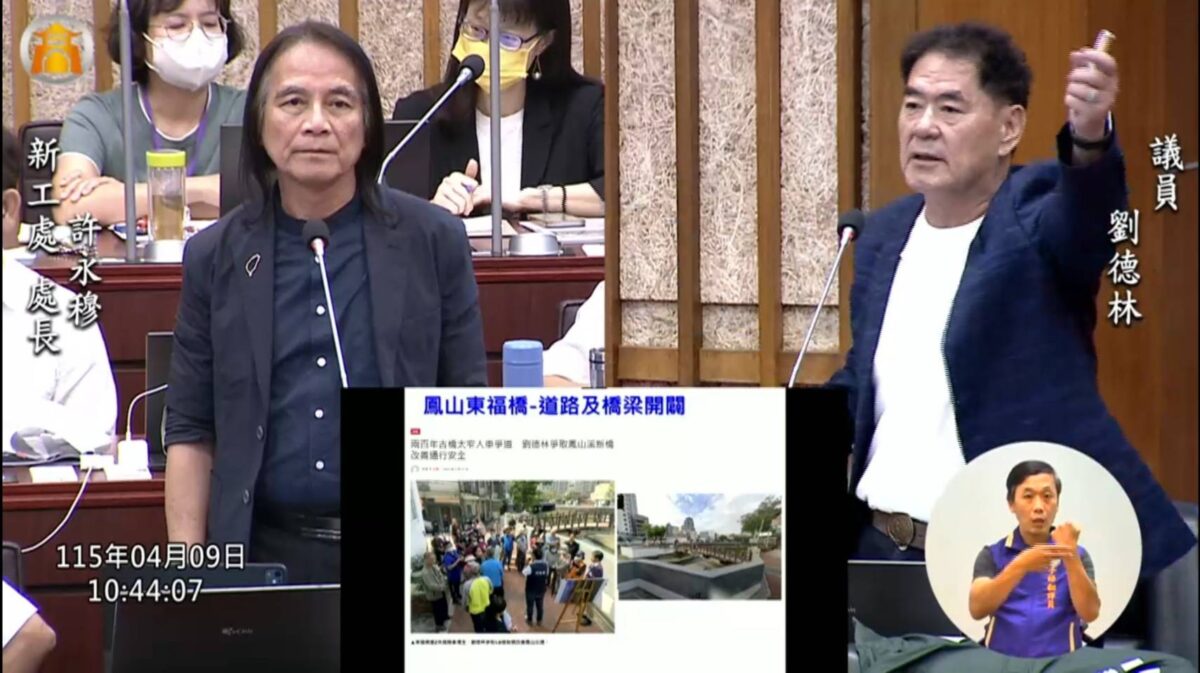 另外,劉德林議員也呼籲工務局及都發局,加速東福新橋興建速度,希望能夠在今年十月底前動工,方便鳳山鎮東里、三民里民眾更便捷安全的橋樑。至於誠信里的軍方閒置土地闢建公園,更應該加快速度,讓里民打開家門就看得見公園,打造宜居新未來。(圖╱記者王苡蘋翻攝)
