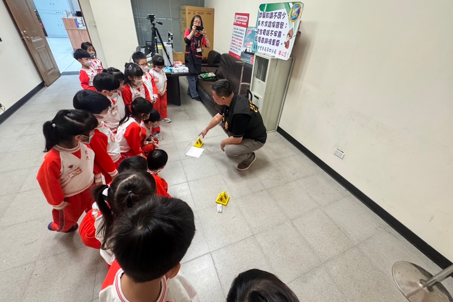 現場也安排有獎徵答活動,孩子們踴躍舉手、熱情搶答,氣氛溫馨又熱絡。活動尾聲,小朋友們依依不捨地高喊「我們還要再來!」,為活動畫下歡樂句點。事後,幼兒園老師更特地返回派出所致贈活動照片,向警察同仁表達誠摯感謝,感謝警方在繁忙勤務中仍用心規劃如此充實又有趣的活動。