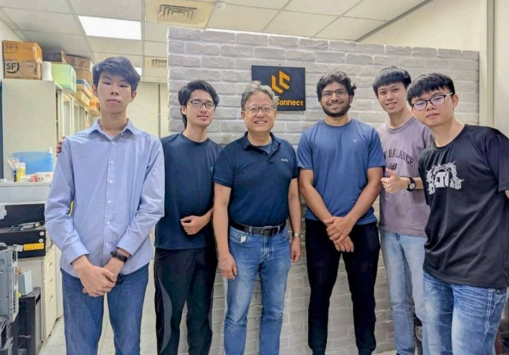▲劉毅安(右二)跨校參與交大產創合作專案計畫,與專案團隊開心合影,展現優異的跨域學習成果。