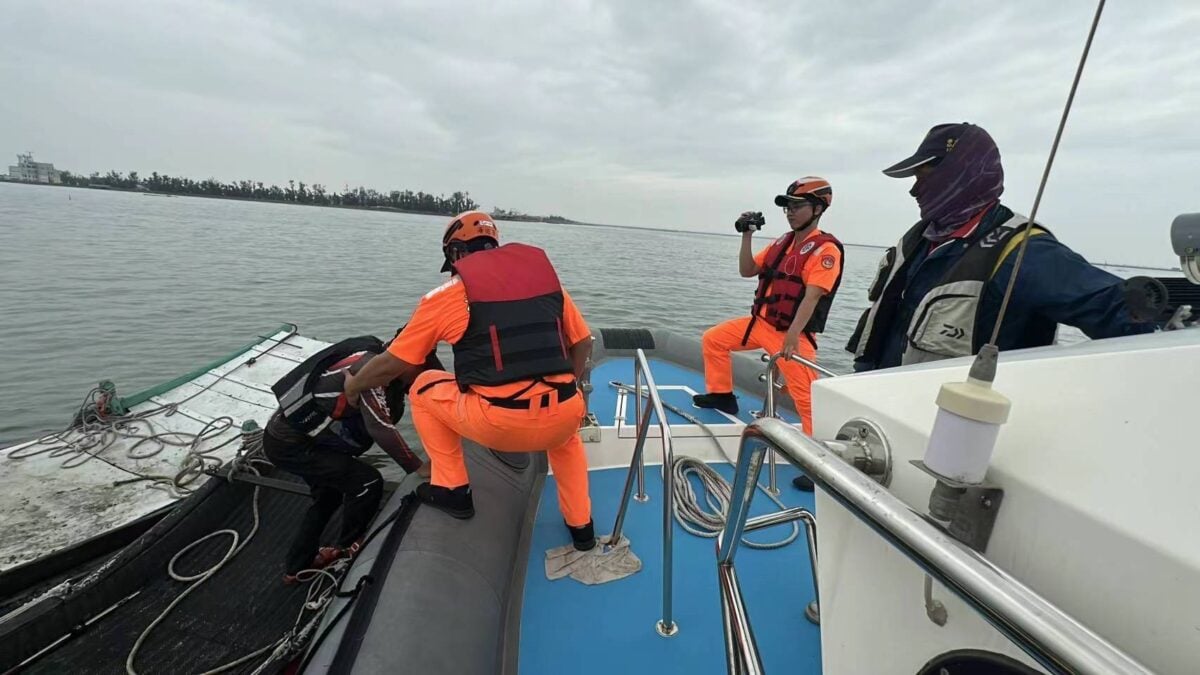 圖:昨日中午12時許,海巡署第五巡防區接獲民眾林先生報案,稱其自駕船舶出港釣魚,在嘉義東石外海因舷外機故障失去動力,船上2人受困,請求協助。第13海巡隊據報立即出動人船趕往救援,順利解危。(照片海巡署第13海巡隊提供)
