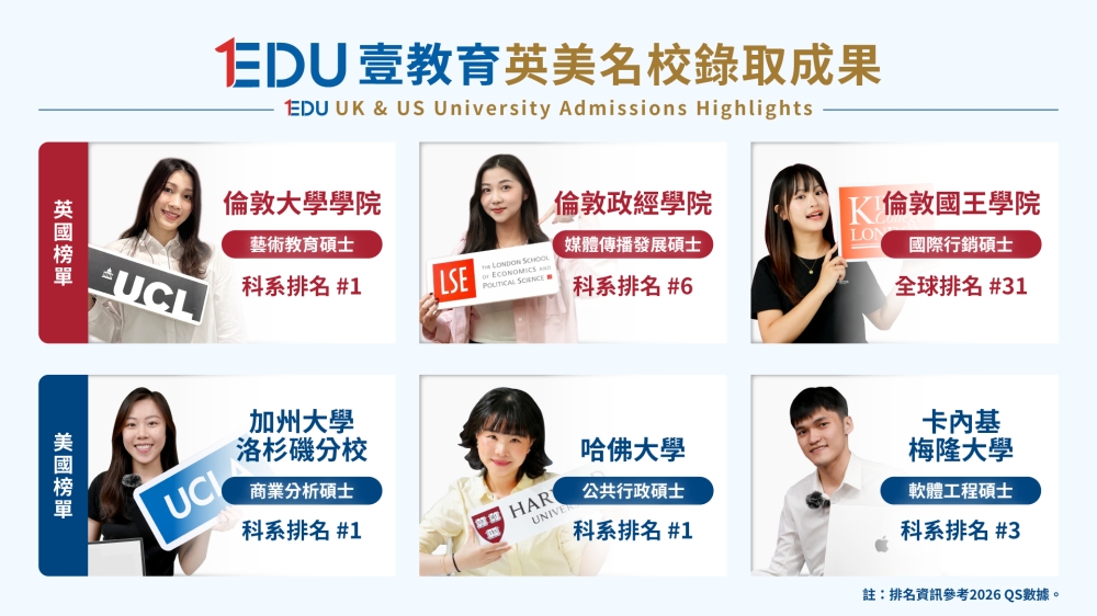 EDU壹教育備多年留學輔導經驗,過去曾協助眾多學生申請英美名校,如牛津大學、倫敦政經學院(LSE)、哈佛大學與哥倫比亞大學等指標性名校,率取成果遍及英美多所頂尖學校,亦成功輔導部分低GPA或語言成績尚未達標的學生進入理想學校。該機構指出,留學申請已不再只是資料填寫,而是一個結合策略規劃、背景梳理與時程管理的整體工程。相較於自行摸索,具備專業顧問支援的申請流程,往往能更有效率地掌握節奏,並提升整體競爭力與錄取機會。