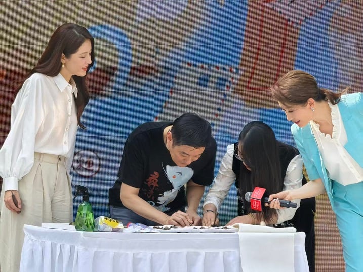 ▲春日見面會上,李志希、曾黎体验非遺版畫。