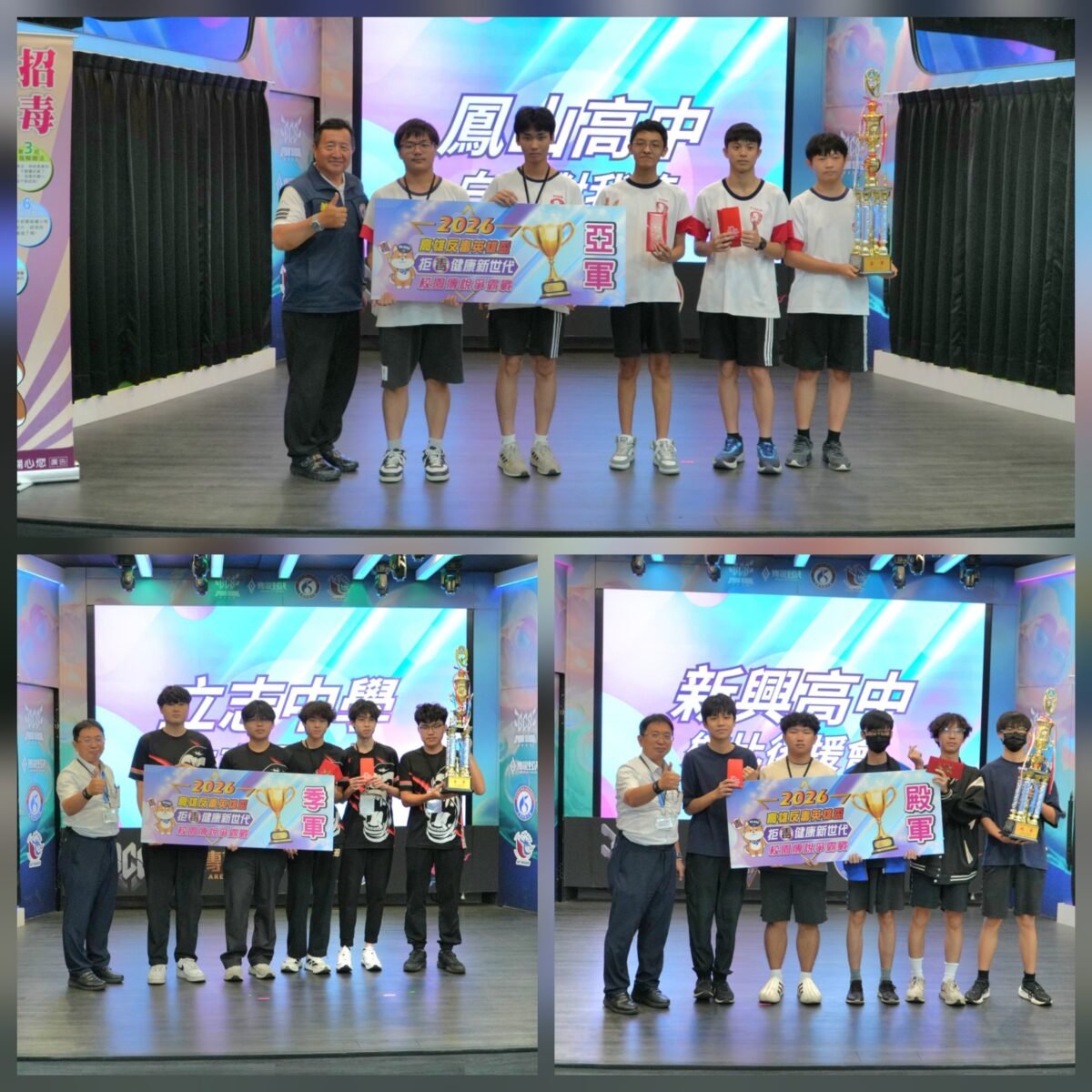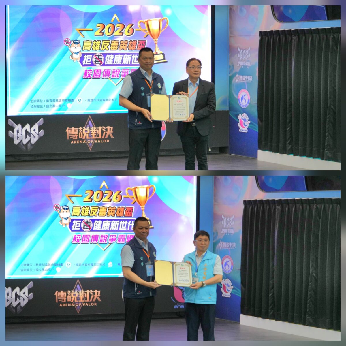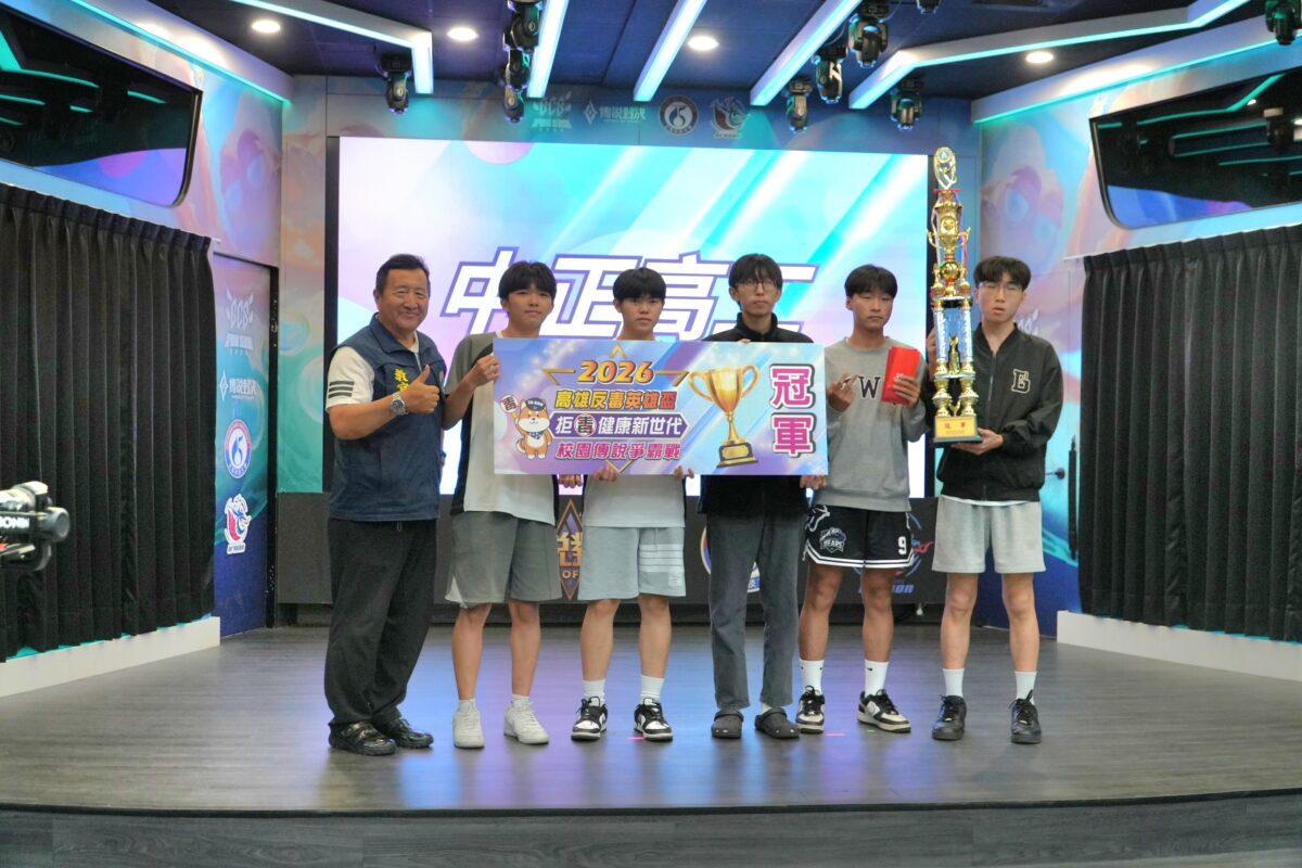 【記者 王苡蘋╱高雄 報導】正修科技大學電競科技系與教育部高雄市聯絡處於(9)日舉辦「2026高雄反毒英雄盃《校園傳說爭霸戰》」傳說對決線下決賽。本次賽事以「拒絕毒害,前途無礙」為核心理念,邀集高雄市17所高中職隊伍參與,歷經線上初賽激烈競爭後,選出8支優秀隊伍晉級線下決賽。歷經一整天的精彩比拚,最終由中正高工奪下2026高雄反毒英雄盃的冠軍。