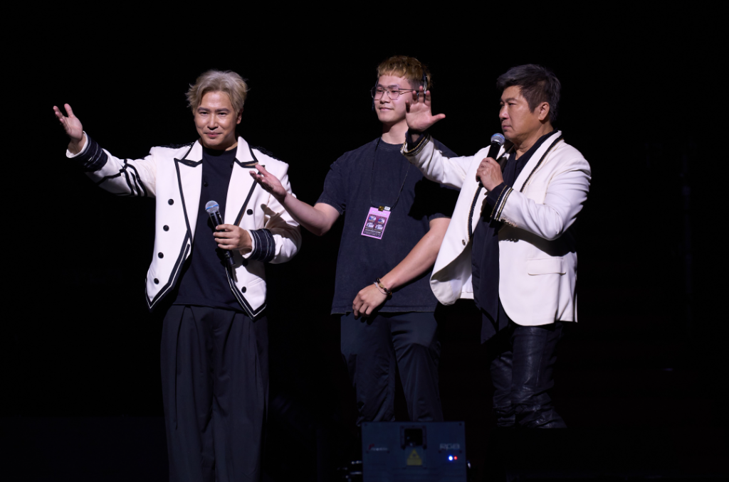 ▲ 主持人胡瓜(右)與歐漢聲(左)在台上介紹璽皓是台灣之光。(圖:圖懸浮製作)