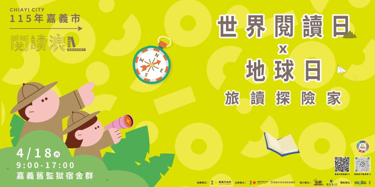 「世界閱讀日x地球日:旅讀探險家」是嘉義市響應世界閱讀日及地球日的特別企劃,不僅是一場閱讀推廣活動,更結合了對環境的承諾與永續理念。透過閱讀與生活體驗,鼓勵市民在日常生活中實踐綠色行動,共同投資我們唯一的星球。誠摯邀請市民朋友於4月18日前往嘉義舊監獄宿舍群,一同展開別具意義的閱讀探險旅程,感受融合閱讀與永續的「嘉義式綠色閱讀日」。