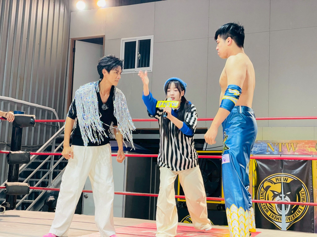 ▲ 阿翔體驗摔角,被「身體360度翻摔」、「駱駝固定技」全場看傻。(圖:民視)