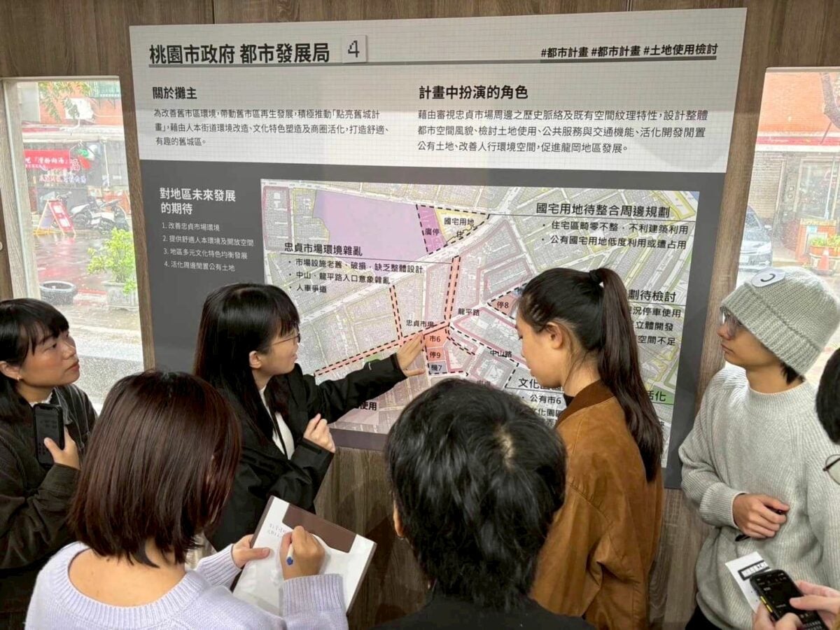 劉為光老師表示,為突破傳統「由上而下」的規劃模式,團隊創新導入「知識市集」與「專家交流工作坊」,邀集桃園市都發局、經發局、交通局及在地社團領袖共同參與。學生透過「跑攤」交流,激盪出捷運導向發展(TOD)、綠地系統建構及人本共享市場等前瞻構想。最終產出的