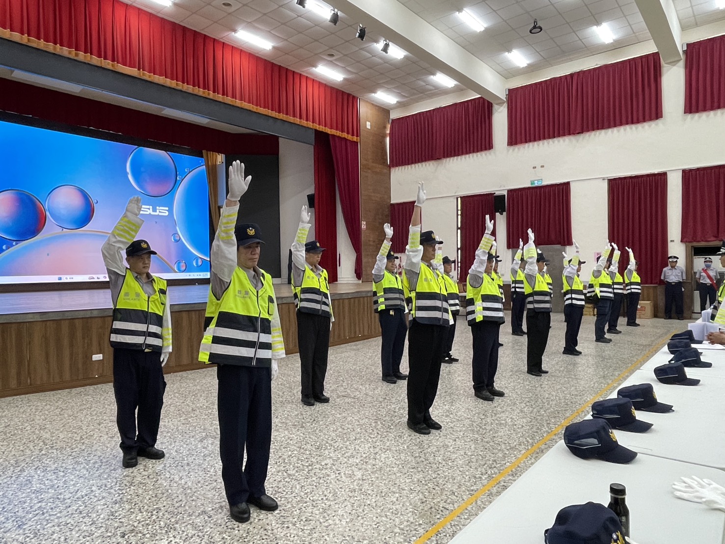 本次訓練課程內容豐富,包含全民國防教育、初級救護與自救、緊急救護實作訓練、相關法令與廉能政府倫理宣導、參與防災協作中心之組織與運作、交通指揮技巧、執勤安全與協勤要領,以及全社會防衛韌性宣講等,課程兼顧理論與實務,提升義警面對各類突發狀況之應變能力。本次訓練共計277名義警參加,同時也邀請多位長官蒞臨指導,包括義勇警察大隊長陳義豐、副大隊長游淑貞及花蓮縣警察局保安科股長司俊華等人,共同關心義警訓練情形。