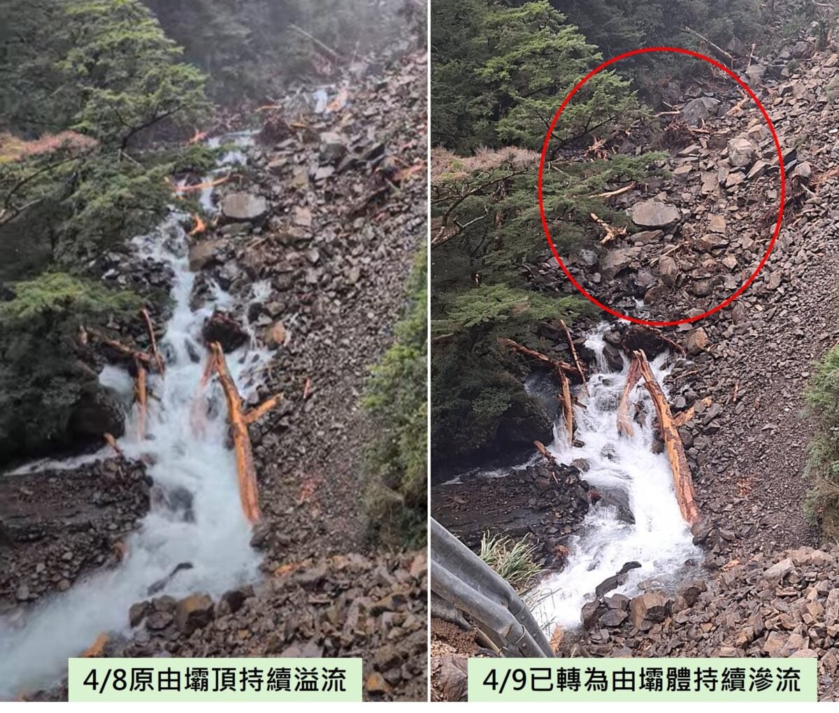 林業保育署臺中分署亦已通報南投縣政府、南投縣仁愛鄉公所、農業部農村發展及水土保持署南投分署、台電大甲溪發電廠遙控中心及公路局谷關工務段等相關單位;並協請太魯閣國家公園管理處加強宣導,提醒合歡西峰往合歡溪便道路段暫停開放,登山民眾請於合歡西峰步道原路折返,勿再前行。(照片/記者廖美雅翻攝)