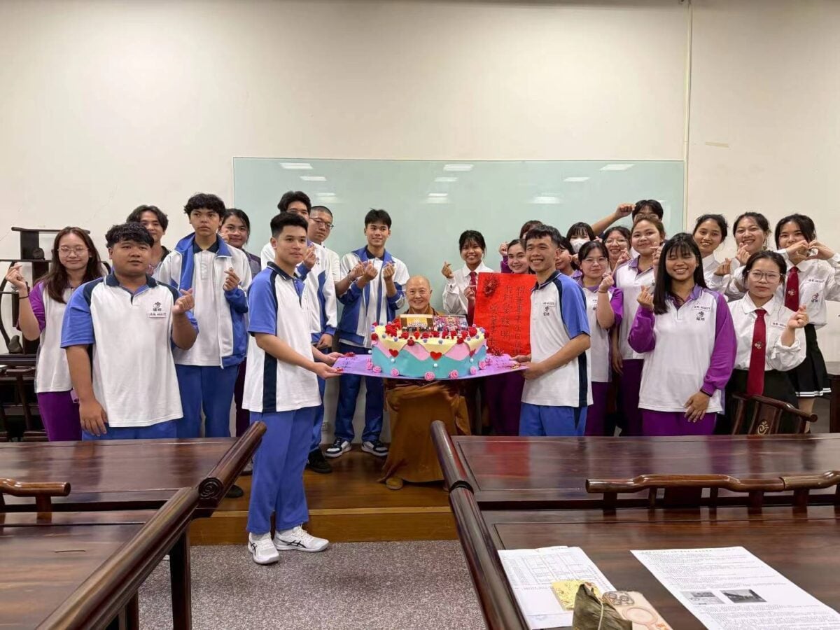 ▲常露上人接受生日祝福,也期許學生追求學識時,亦能培養慈悲與責任心,成為社會棟樑。