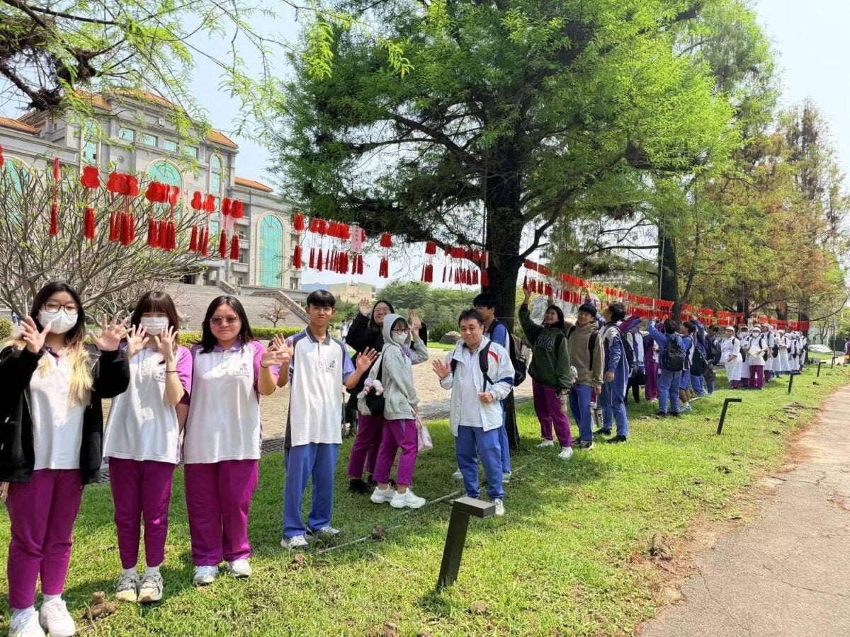 隨後,學生將寫滿祝願的祈福葫蘆紅卡繫於校園落羽松大道,隨風輕揚,象徵福慧綿延、生生不息,也傳遞對未來的美好期盼。