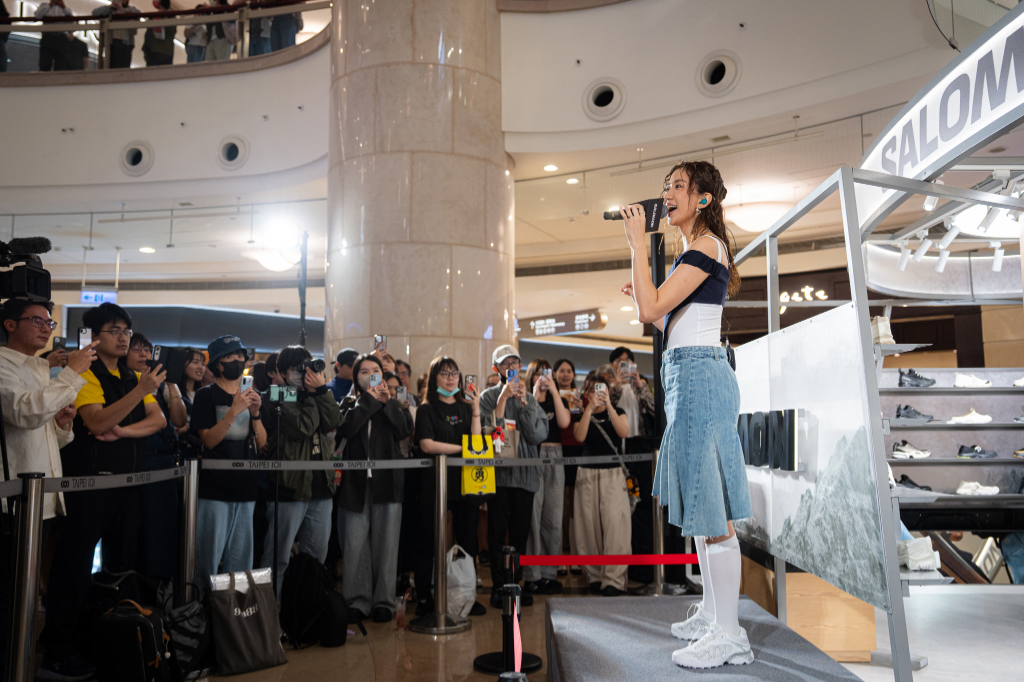 金曲常客 9m88 昨(9日)受國際品牌 SALOMON之邀,現身台北101購物中心,出席品牌期間限定店開幕派對「XT-Whisper Party」,並現場演唱代表作〈輕輕放下〉,以慵懶又富層次的嗓音瞬間收服全場,掀起話題熱潮。活動現場湧入大批粉絲與人潮,女神一現身立刻吸走全場目光,成為最強「人肉磁鐵」,也為品牌正式進駐台灣指標性商場揭開序幕。