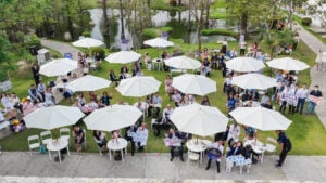 現場安排獻花儀式,邀請李鴻瑋、李安阜、王敬瑜、毛方聖四位返鄉醫師上台,同時邀請其高中時期校長及家長共同出席,呈現醫師成長歷程中家庭與學校的陪伴與支持。