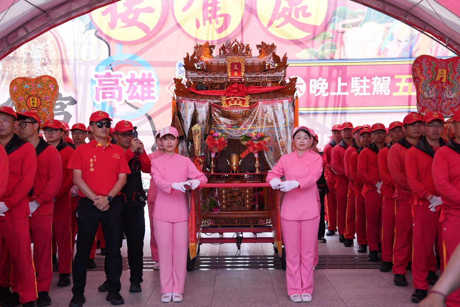 A nine-day, eight-night pilgrimage on foot led by Taoyuan Longde Temple’s SiMaz has drawn tens of thousands of devotees along a journey spanning more than 400 kilometers. The procession entered Kaohsiung today (April 11), welcomed by over a hundred temples along the route. Passing through districts including Gangshan, Qiaotou, Nanzi, Renwu, Zuoying, Sanmin, and Lingya, the pilgrimage ultimately arrived in Fengshan District. A welcoming ceremony was held at Fengling Square at noon, with the deity later stationed overnight at Wujia Longcheng Temple. Covering more than 400 kilometers across nine cities and counties, and stopping at seven temples, the pilgrimage has set a record as the longest walking religious procession in Taiwan.