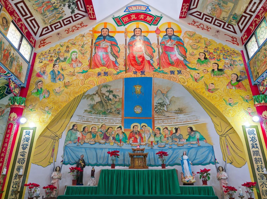 ▲ 鹽水天主堂可見全球罕見的東方版最後晚餐圖。