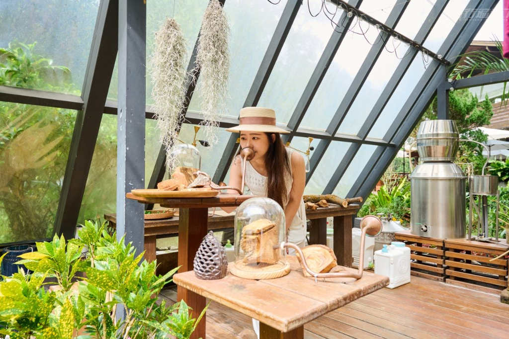 除了植物導覽,園區還規劃各種客製化的活動,包括昆蟲生態觀察、濕地植物採集、香草導覽與植物生態瓶DIY等等。深受旅客喜愛的香草生態園區,栽種數個品種的薄荷、甜菊葉、甜舌草、檸檬香蜂草等芳香植物,隨手捻起一片葉子輕輕搓揉,精油香氣瞬間在指尖釋放,感覺身心都被療癒了。來到香草精油提煉屋可以體驗純露萃取,跟著導覽員從鋸下的茶樹枝條,學習如何分解植物、進行精油與純露的蒸餾,並且享受空氣中濃郁悠長的香味,全然放鬆與山林融為一體 。