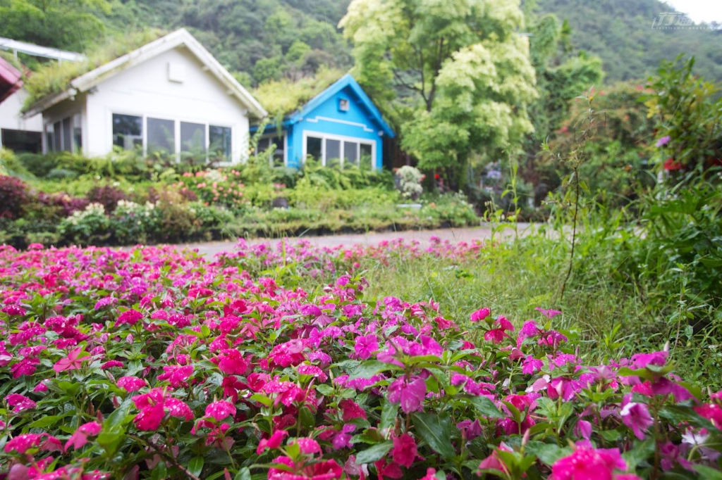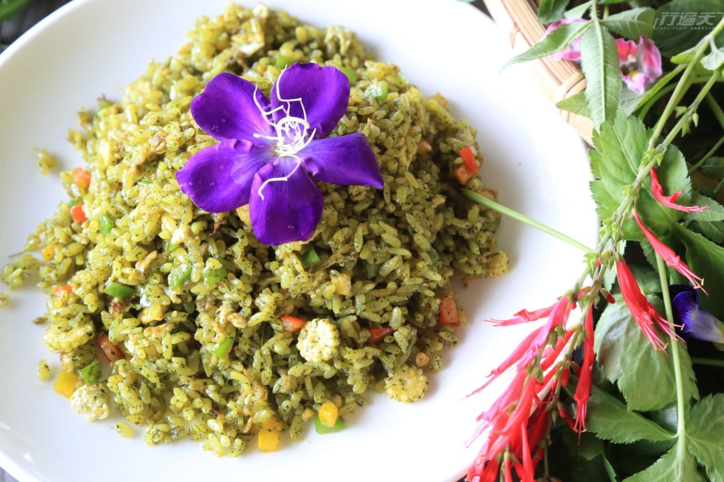 走進充滿「農時尚美學」的花園,裡頭小橋、流水、落羽松、紅燈籠,每一眼都充滿詩意。在這裡可以品嚐以青黛染製而成的「山嵐吐司」,或選擇蔬食或傳統客家菜,也能體驗藍染或花葉移印染,並依著不同季節,用眼睛與口舌感受金蓮花、海棠、琉璃苣、歐芹、迷迭香等多樣香草與食用花卉,現採後立即上桌,餐盤滿是繽紛。