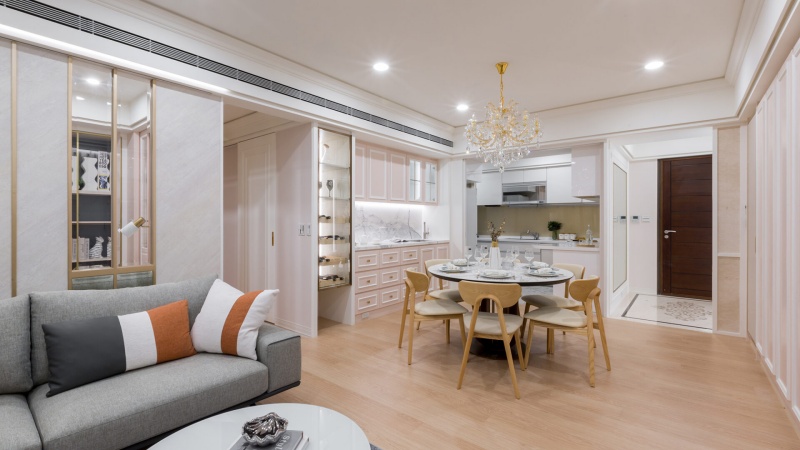 - 有效阻煙:廚房採用透明玻璃拉門,維持公領域視覺開闊性的同時,亦有效阻擋油煙散逸。