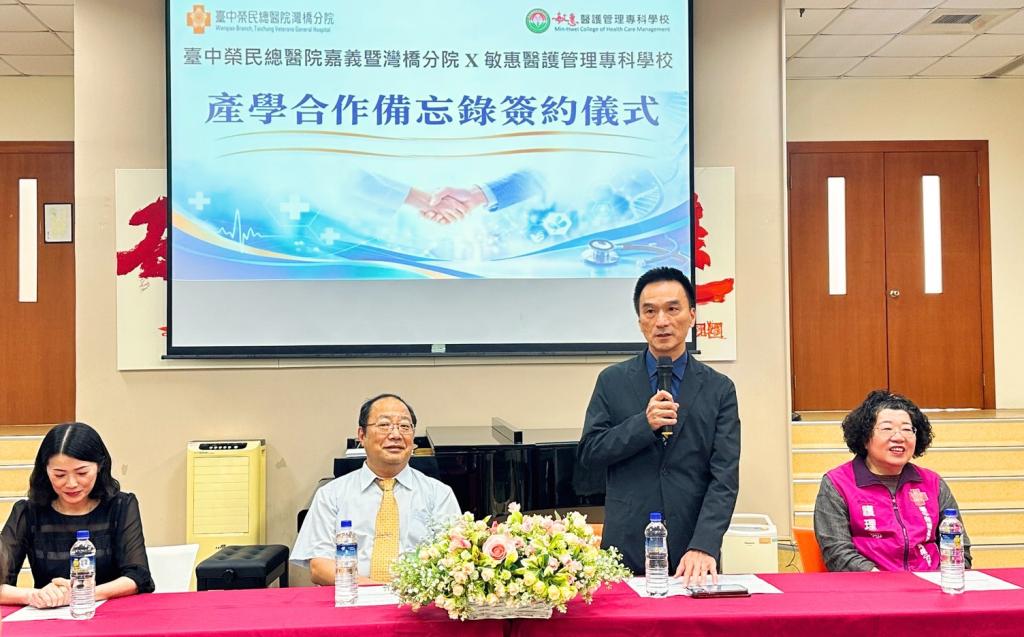 臺中榮總嘉義分院陳正榮院長強調,此次合作備忘錄的簽署,不僅延續既有產學合作成果,更進一步完善護理與長照人才培育鏈,未來將持續透過資源共享與跨域合作,打造多元學習與實務平台,培育兼具專業能力與人文關懷照護人才,共同迎向高齡社會挑戰,並深化對榮民、榮眷及在地長者照護服務,持續提升醫療品質與照護溫度。
