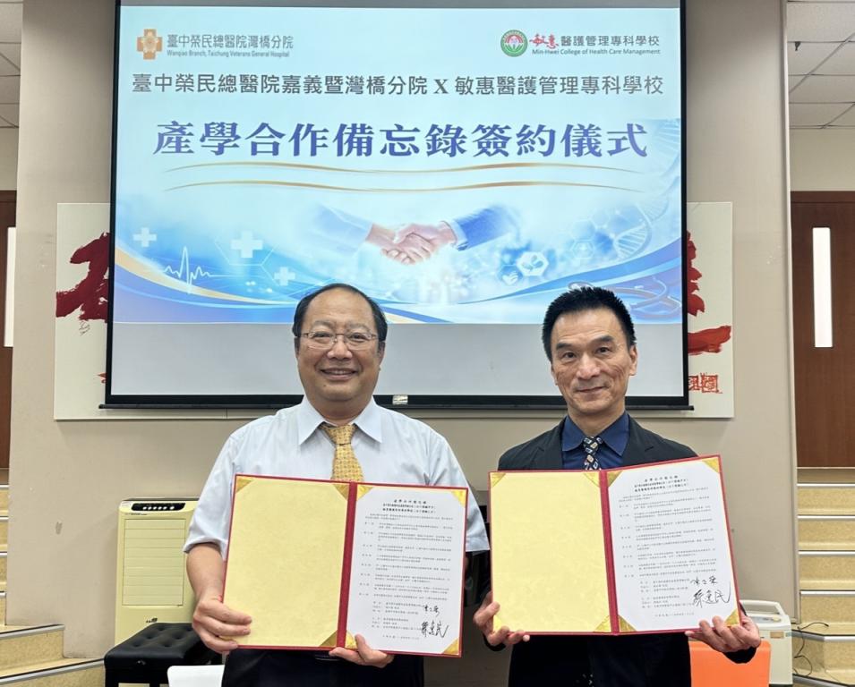 【勁報記者于郁金/臺南報導】臺中榮民總醫院嘉義分院持續深化產學合作布局,繼與長庚科技大學及崇仁醫護管理專科學校合作後,4月13日再與敏惠醫護管理專科學校簽署合作備忘錄(MOU),逐步建構涵蓋不同學制護理與長照人才培育體系,為因應高齡社會照護需求提前布局;簽約儀式13日在臺南柳營敏惠醫專舉行,由臺中榮總嘉灣分院院長陳正榮率領護理部團隊,與敏惠醫專校長孫逸民代表簽署,象徵雙方合作關係再升級。