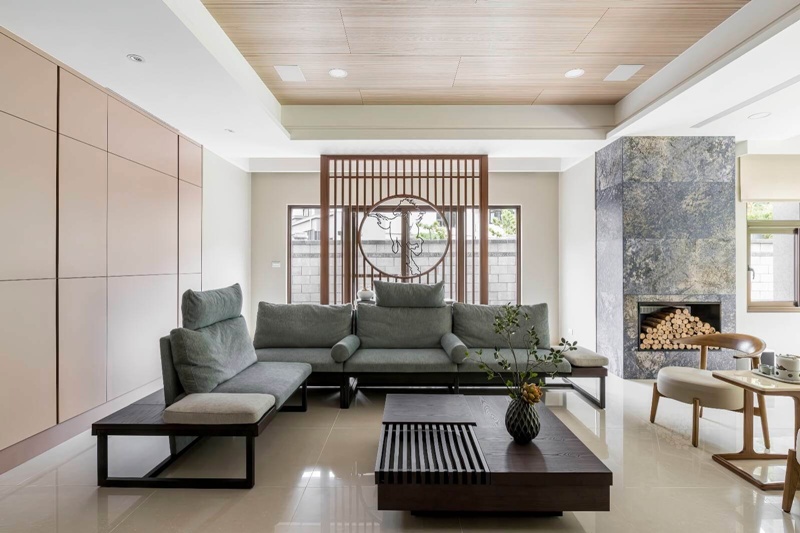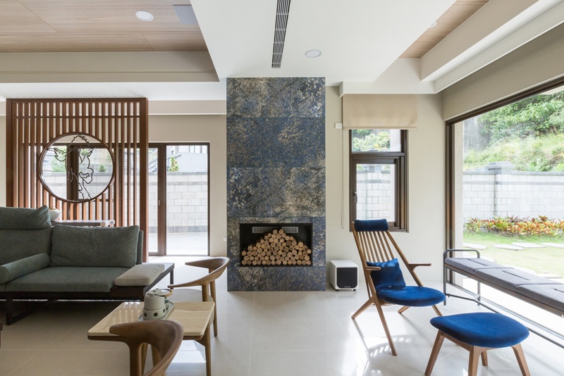 - 禪意交誼:梅花圖樣與景泰藍薄石板壁爐,營造出「微雨燕雙飛,落花人獨立」的寧靜意境。
