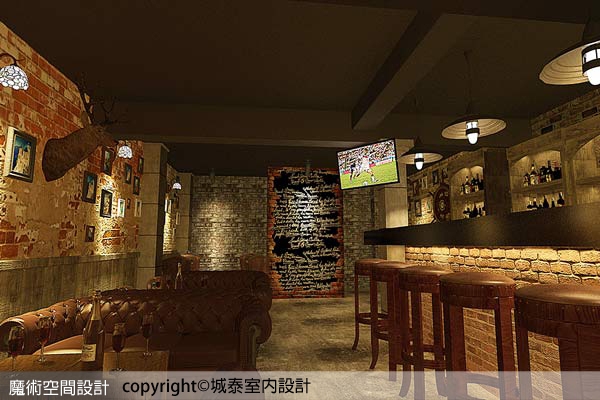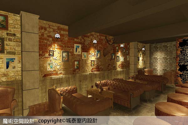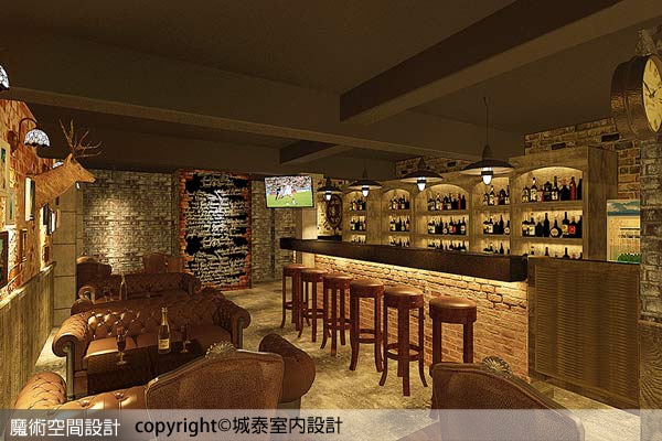 5.【圖說】斑駁磚牆裝置鹿頭壁飾更添復古味,搭配英美風沙發、吧檯椅凳,壁燈、吊燈等軟裝一次到位,將氣氛帶入時空隧道。(本圖片為3D合成示意圖)