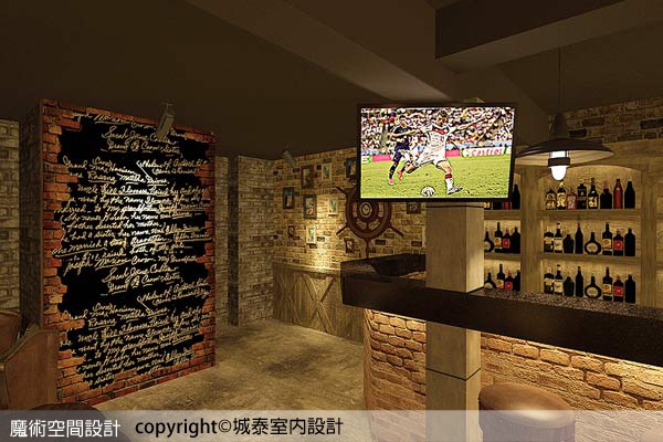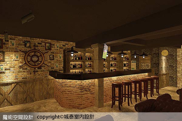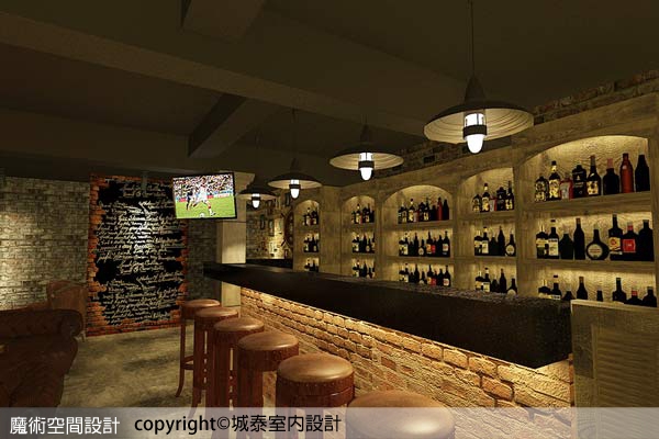 1.【圖說】城泰室內設計總監葉嘉文在吧檯內為業主量身打造的雙層酒櫃,以整排牆面作仿舊設計,容量與風格兼具,讓人產生信任的專業感。(本圖片為3D合成示意圖)