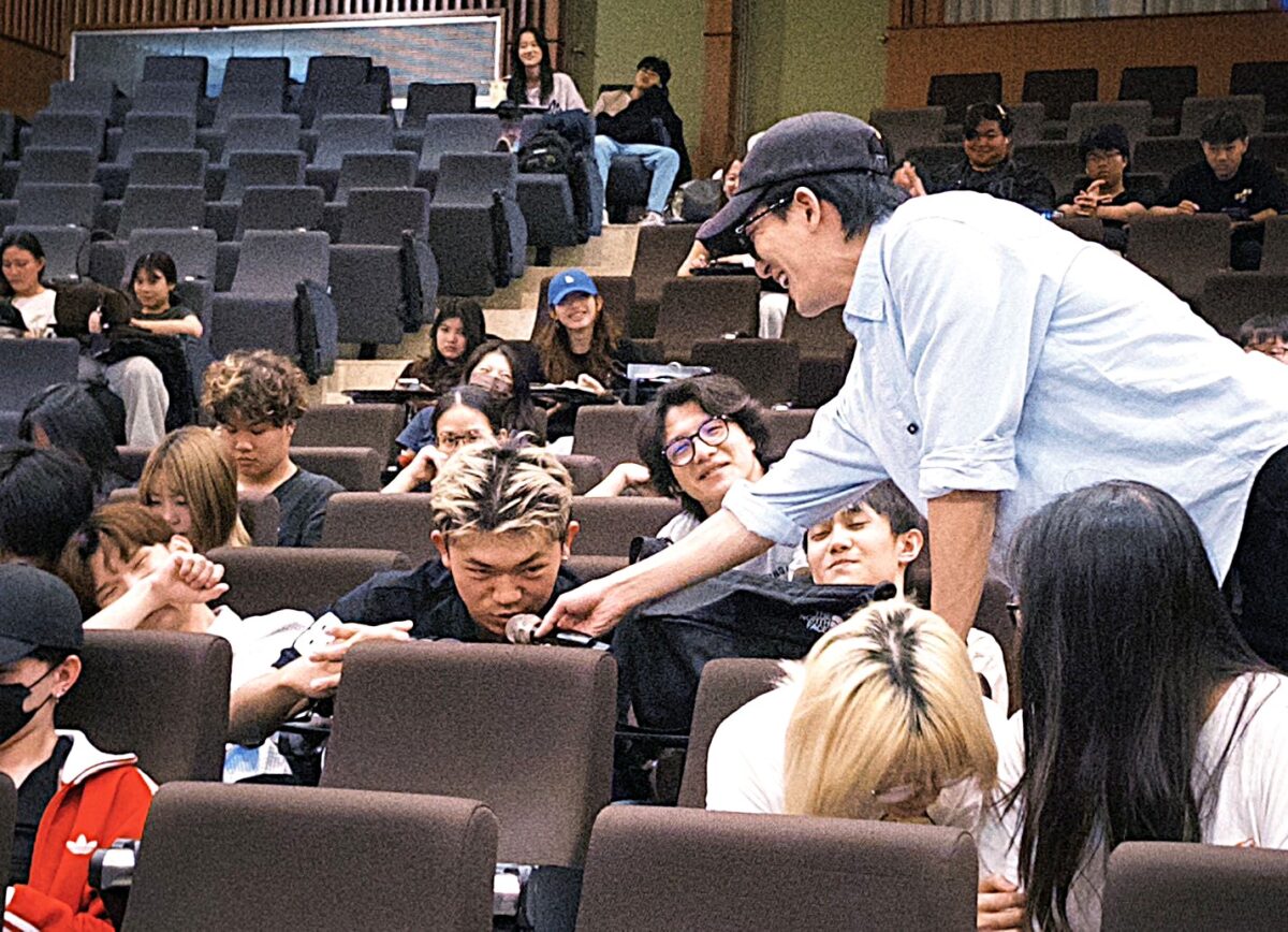▲邱昊奇於校內分享其豐富的影視與創作經驗,並與同學互動。