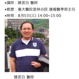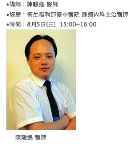 一、8月5日:「癌因性疲憊症之認識-陳若白 醫師主講」與「疲憊之中西醫處置-陳駿逸 醫師主講」