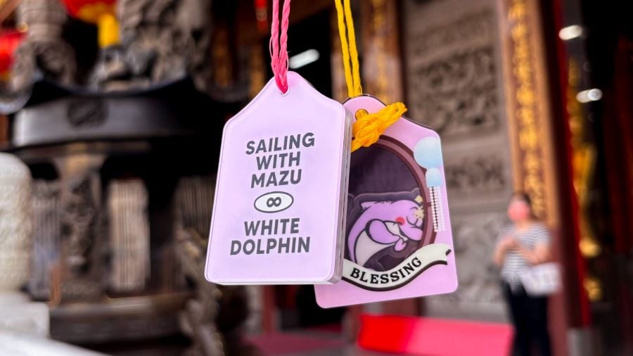 配合此次媽祖繞境活動,海保署特別規劃「線上求海籤」活動,結合媽祖文化與白海豚保育意象,邀請民眾在參與信仰盛事的同時,也一起關心海洋保育。活動中若抽中「神兆」,即可兌換限量媽祖魚護身符。護身符的繩結特別採用回收再製而成,由海保署與海廢再生聯盟成員「迦南樂活全人發展協會」合作,採用廢棄漁網回收線材製成,將原本可能危害海洋生物的廢棄物,轉化為蘊含祝福意義的守護象徵,不僅別具巧思,也傳達資源循環利用與海洋友善的理念。