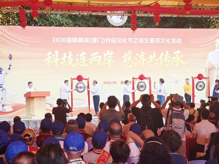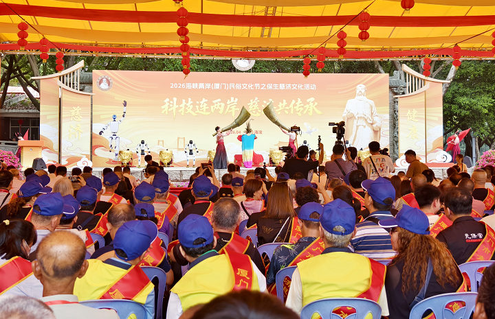 【記者 徐迪/福建廈門 報導】4月15日,2026海峽兩岸(廈門)民俗文化節在福建廈門海滄區青礁慈濟宮啟動。本屆活動以「科技連兩岸 慈濟共傳承」為主題,聚焦兩岸文化同源、血脈同根、信仰同心的深厚聯結,吸引海峽兩岸以及東南亞的宮廟代表、宗親信眾、青年約500人齊聚海滄,共敘親情、共傳文脈。