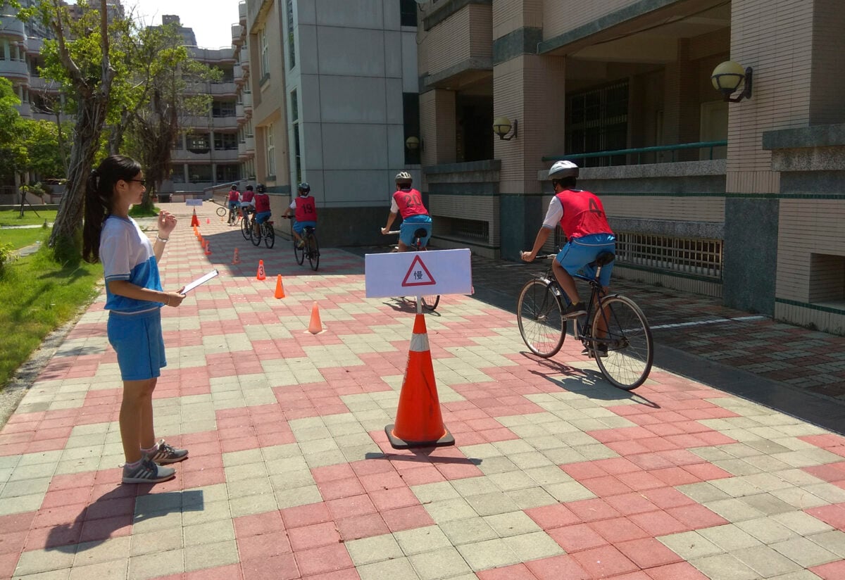 ▲台南市道安團隊教育小組在學校進行騎乘自行車的安全教育。