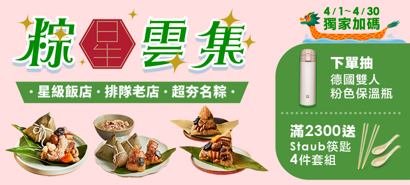 現在momo「賞星鮮」五星飯店、名店專區嚴選推薦超過30種口味選擇,南北粽、海鮮粽、客家粿粽、草仔粿粽、鹼粽、冰粽等一次滿足。掌握先機提早預購「賞星鮮」享獨家好康,下單即可抽好禮,滿額送名牌廚具。