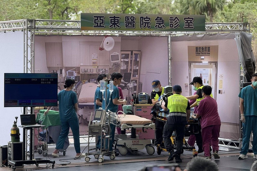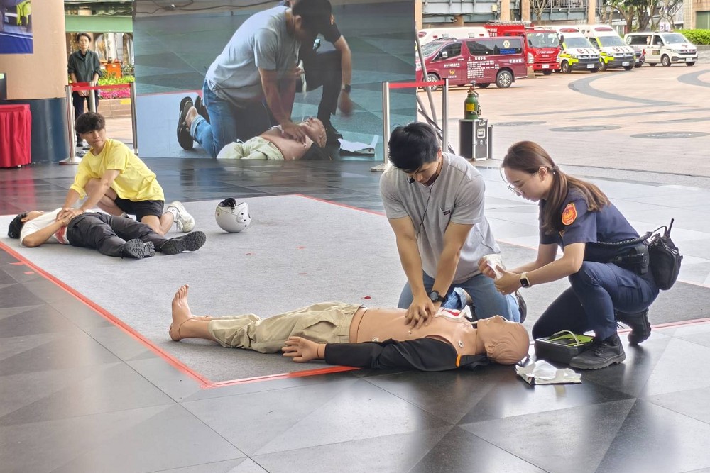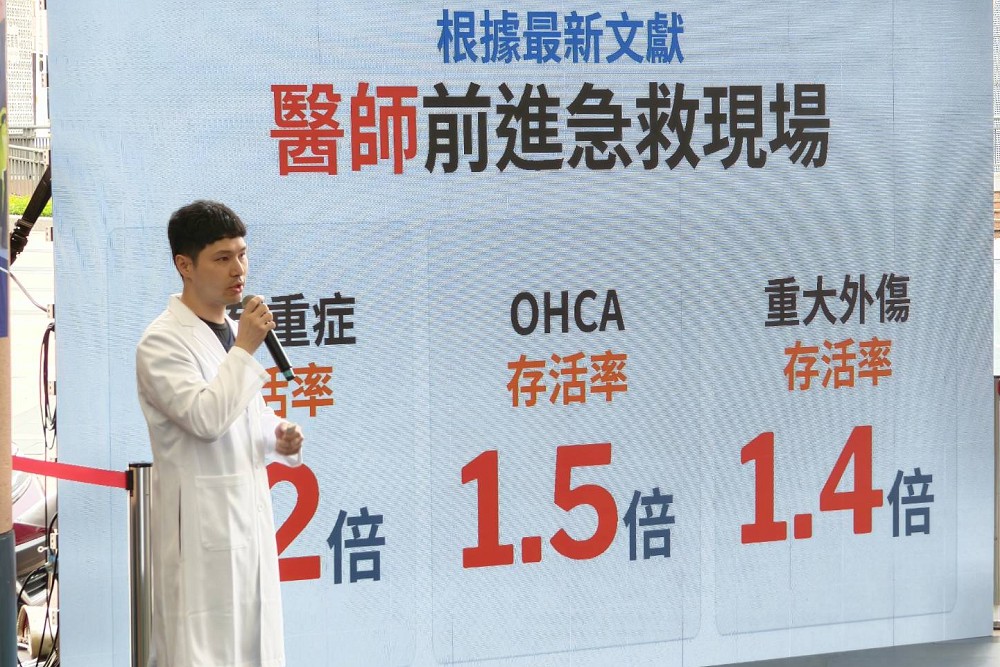 記者會除安排OHCA情境演練,示範一連串到院前緊急救護處置流程,包括DACPR(119線上指導壓胸)、多軌派遣(警察運送AED、高階救護支援ALS、Doctor Car)、現場啟動院前葉克膜,並完美串聯院前急救與院內治療生命之鏈。
