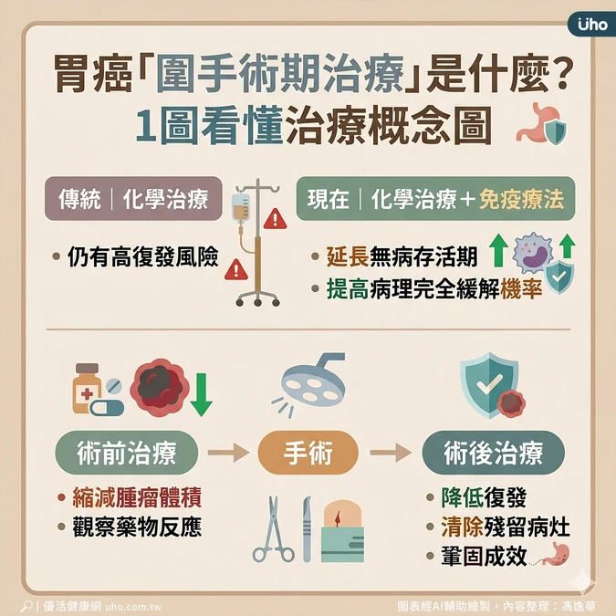 本文授權轉載自《優活健康網》,原文為胃癌一定要全切?醫揭「圍手術期」新趨勢:降3成復發、2成死亡風險