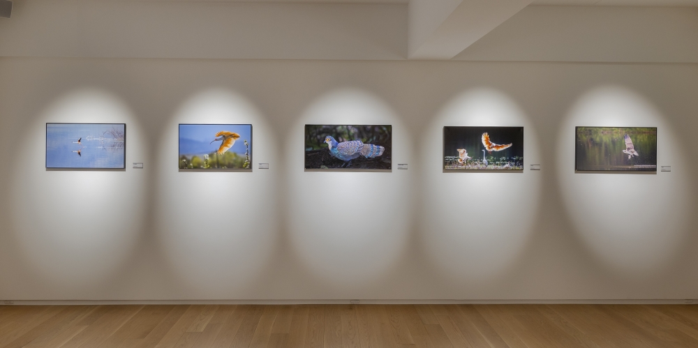 本次展名「彩鳥報喜」一語,既指鳥類繽紛絢麗的羽色,也隱含自然所帶來的祝福與蓬勃生機。在當代快速流動與高度都市化的生活中,人與自然之間的距離日益拉遠,而本次展覽正提供一個重新凝視與理解的契機。透過王紹麟作品中珍稀鳥類細膩而充滿張力的影像,觀者得以暫緩步調、沉靜心緒,感受自然所蘊含的豐沛生命力,並在觀看的過程中,體會來自萬物生命的觸動、驚喜與啟發。