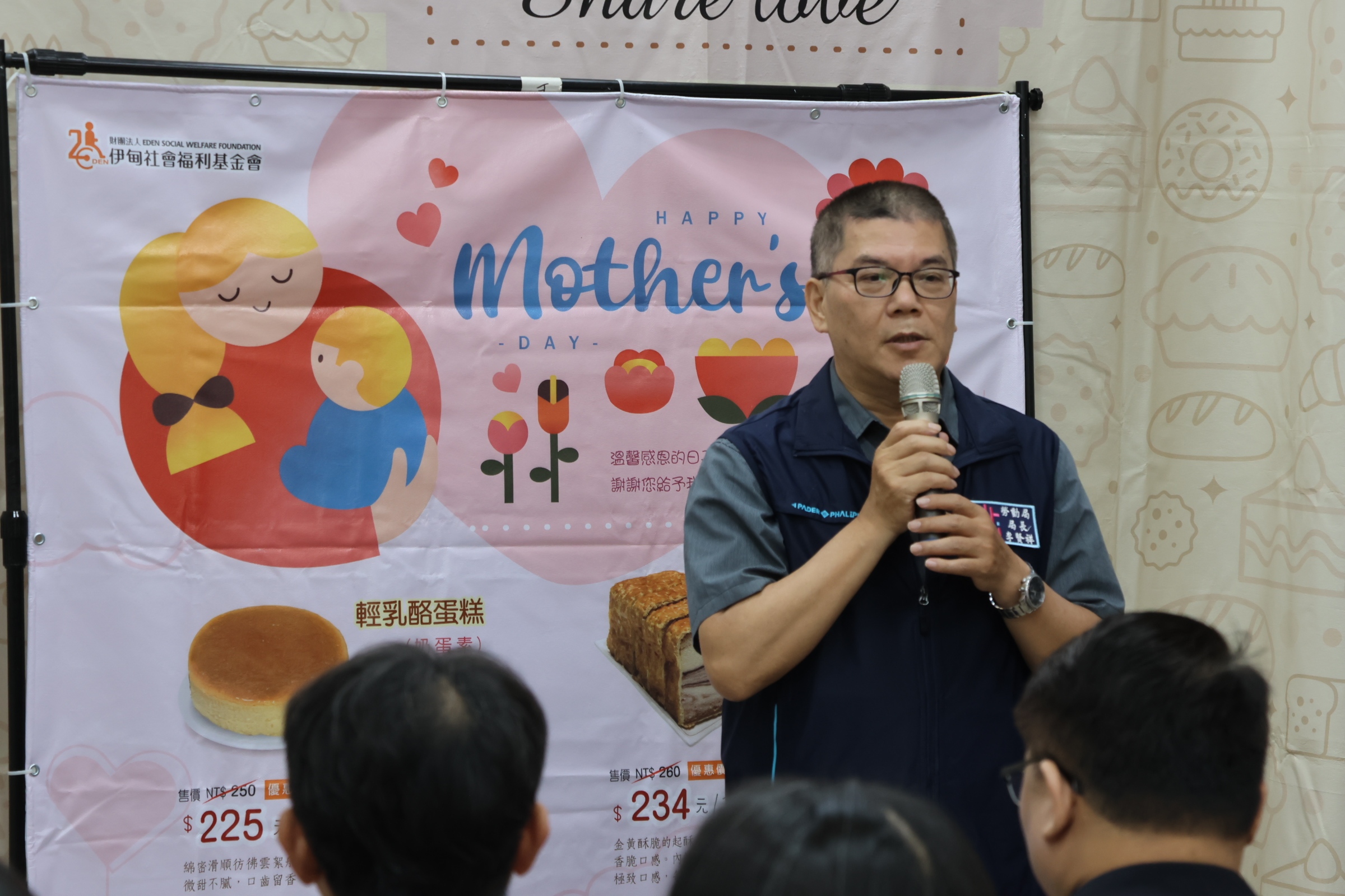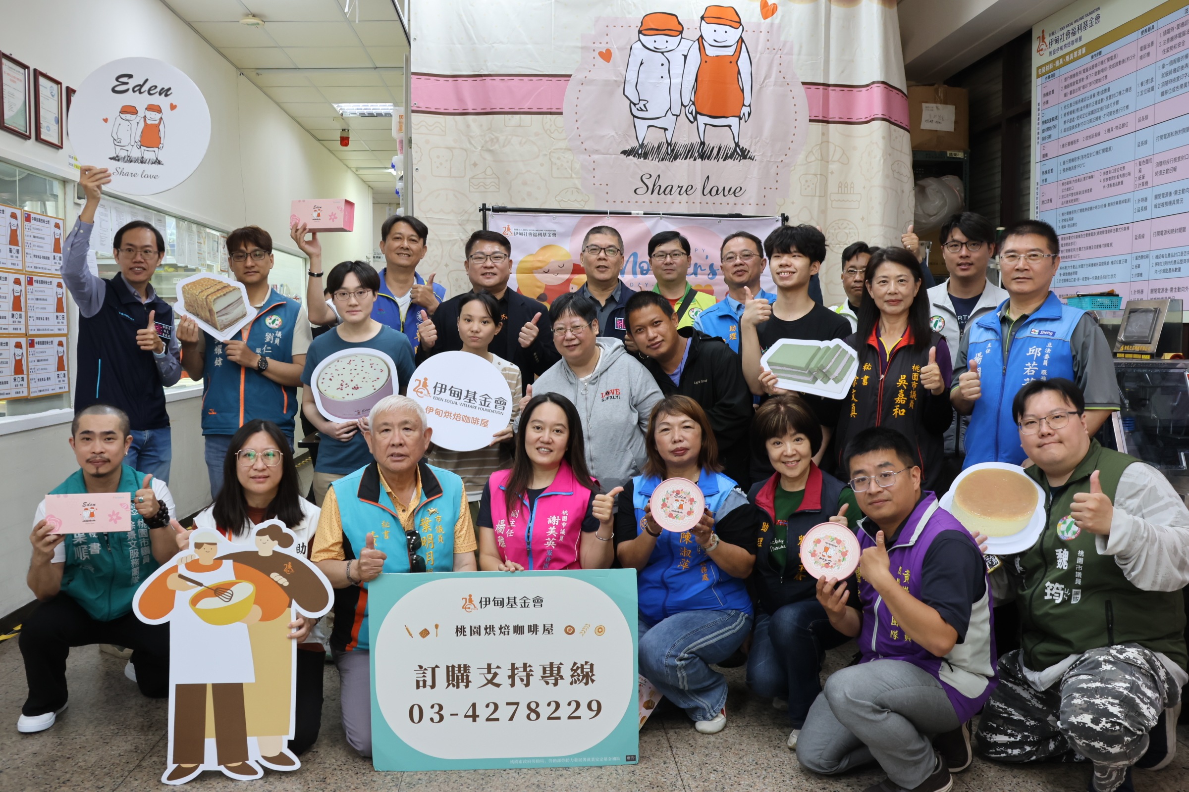 今(17)日,伊甸舉辦母親節蛋糕開賣記者會,伊甸庇護事業處處長陳智宏、桃園市勞動局局長李賢祥,以及多位在地議員、企業夥伴現身支持。多位轉銜成功的庇護員工,也特別受邀回娘家,分享自身經歷,讓現場貴賓共同見證庇護員工的成長;同時感謝民眾的支持,希望持續踴躍訂購,支持障礙者穩定就業,在社區中好好過日子。