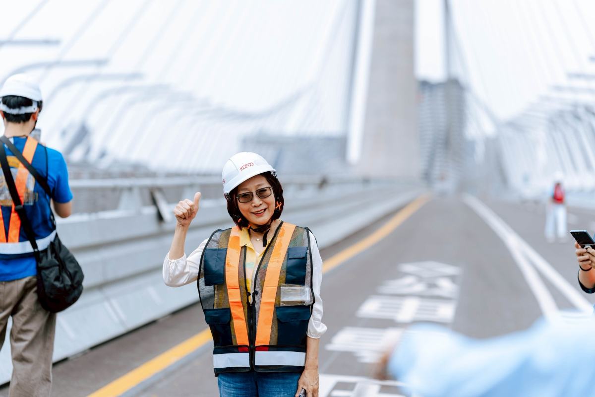 工信工程簡報時表示,淡江大橋歷經30年規劃推動,即將於2026年5月通車,不僅是交通建設,更是融合工程技術與建築藝術的世界級作品。該橋出自英國建築大師札哈哈蒂(Zaha Hadid)團隊之手,其流線曲面設計極具未來感與辨識度。她也是首位獲得普立茲建築獎的女性建築師,其設計語彙以高難度曲線聞名,淡江大橋亦被視為具歷史意義的地標工程。