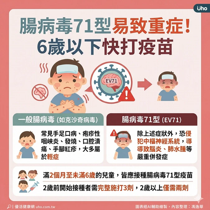 本文授權轉載自《優活健康網》,原文為腸病毒進入高峰期!醫籲6歲以下「打這支疫苗」防重症:保護力達9成