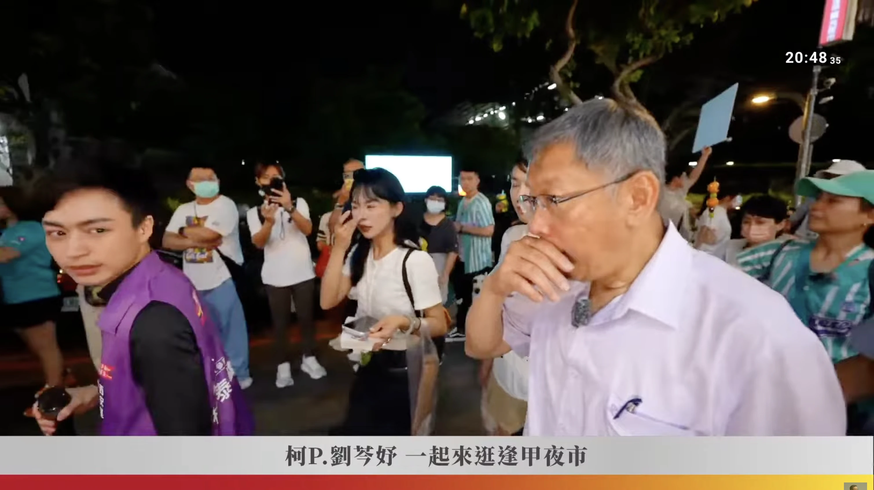 柯文哲一行人品嚐逢甲夜市地瓜球時,劉芩妤拿著食物不停打噴嚏,畫面看起來相當狼狽,之後又忍不住皺著眉再度問:「到底是什麼東西這麼嗆?」話才剛說完,立刻又咳了起來,連身旁幕僚也跟著出聲附和:「對啊,這裡有個東西好嗆。」此時柯文哲似乎也察覺異狀,抬手摀住口鼻,最後又低頭咳了一聲。