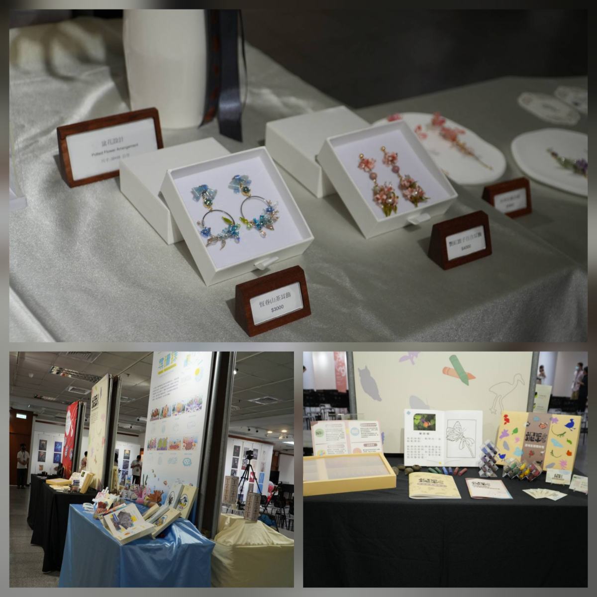 在專題創作方面,學生以設計回應社會與文化議題,展現跨域整合能力。《尋珊錄》關注海洋保育、《身軀袂爽》結合台語與健康教育、《花見》融合花藝與金工,呈現多元創作成果。此外,《泥彩》推廣環境教育、《鳥之都》呈現在地生態、《墨影華窗》轉化傳統窗花為當代飾品,展現設計多元應用。