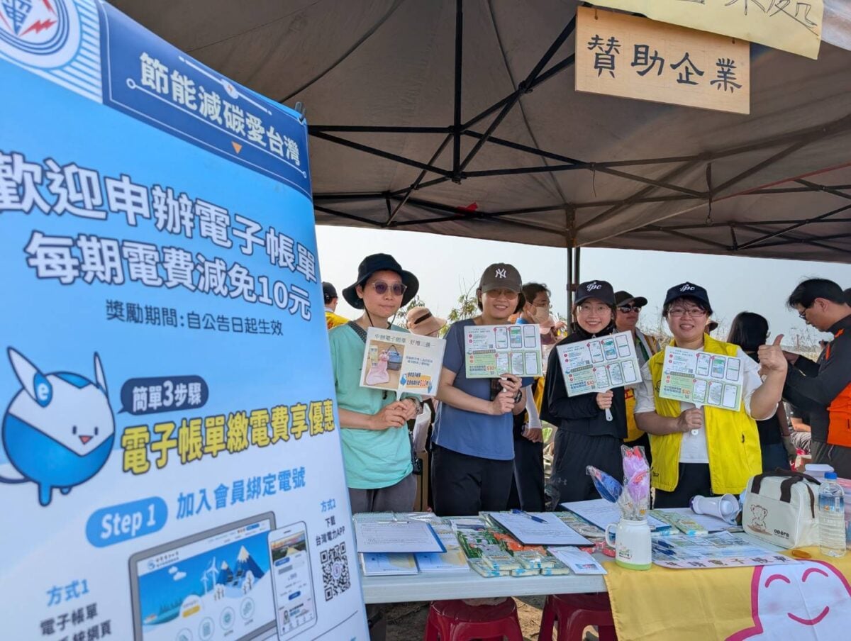 ▲活動現場,台電高雄區處也特別設置宣導攤位,推廣電子帳單及台電APP,鼓勵民眾養成節能減碳與智慧用電的生活習慣。